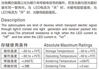 光電耦合器產(chǎn)品當前位置:首頁 >> 產(chǎn)品信息 >> 光敏電阻 >> 光電耦合器產(chǎn)品